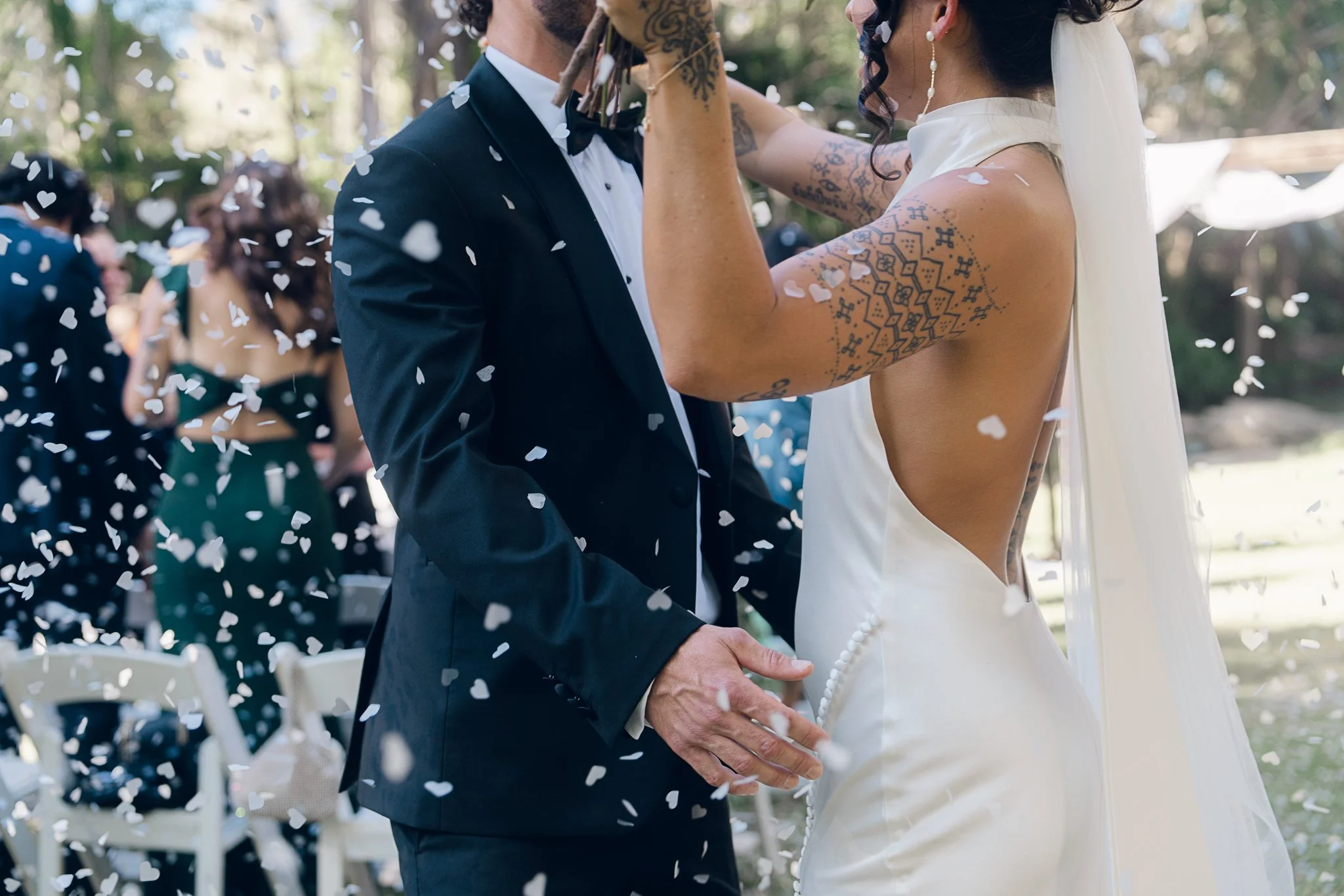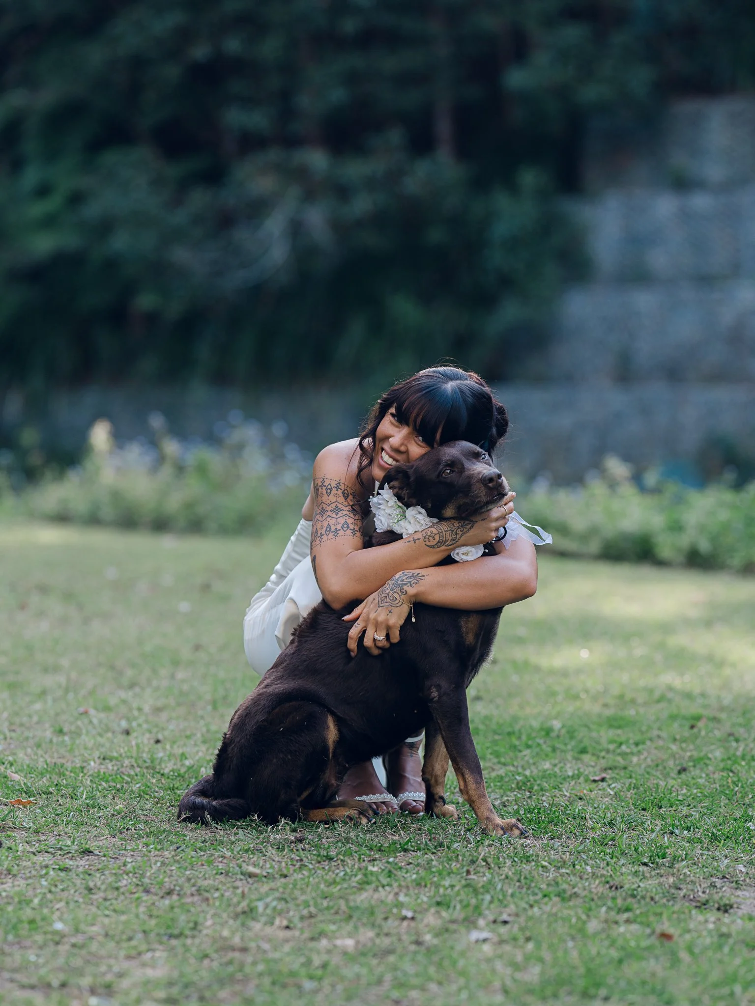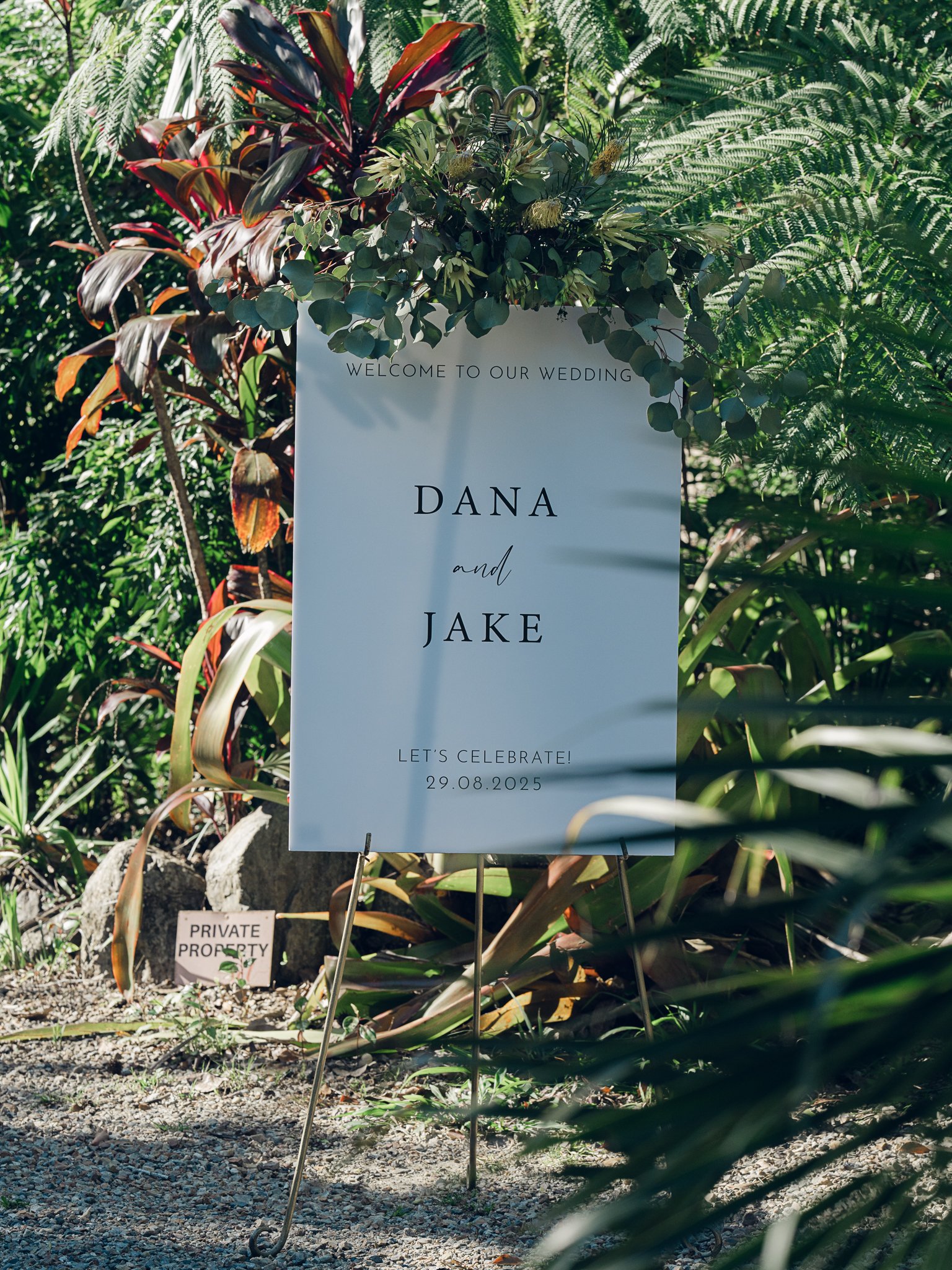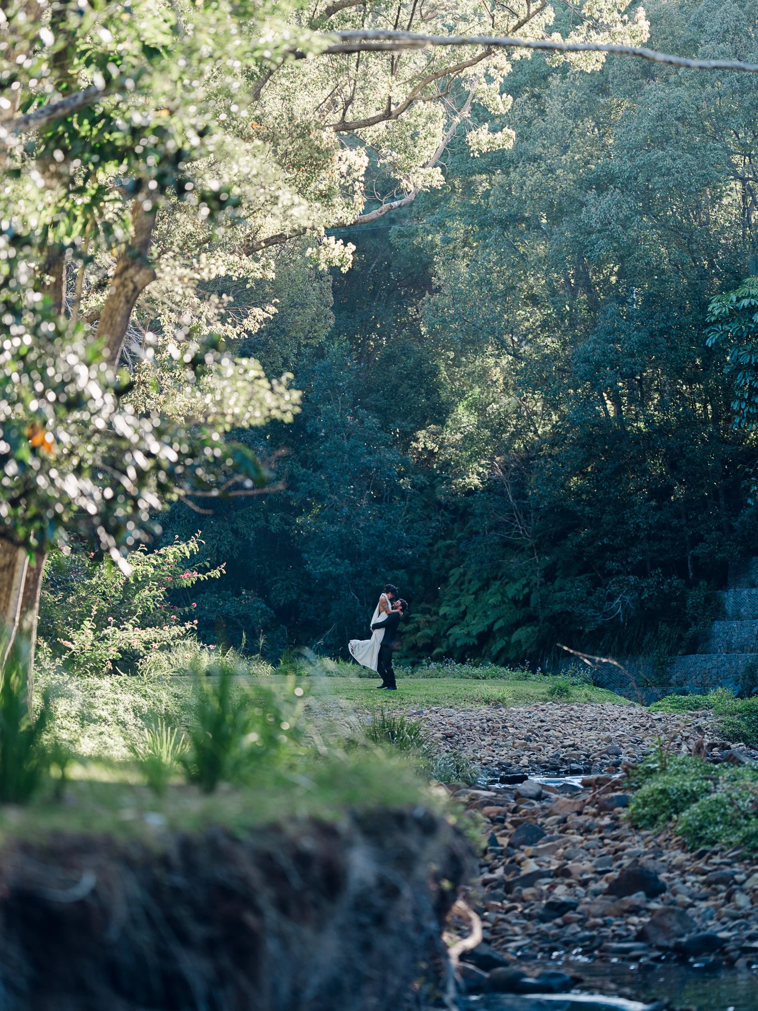Dana and Jake celebrated their love with a warm, intimate garden party surrounded by family, close friends, and their beloved pup Luna. Nestled in the peaceful Currumbin Valley, this enchanting rainforest wedding took place at the stunning Sol Gardens—a hidden seven-acre oasis of lush greenery, tranquil creeks, ponds, vibrant gardens, and beautifully flowing outdoor spaces.