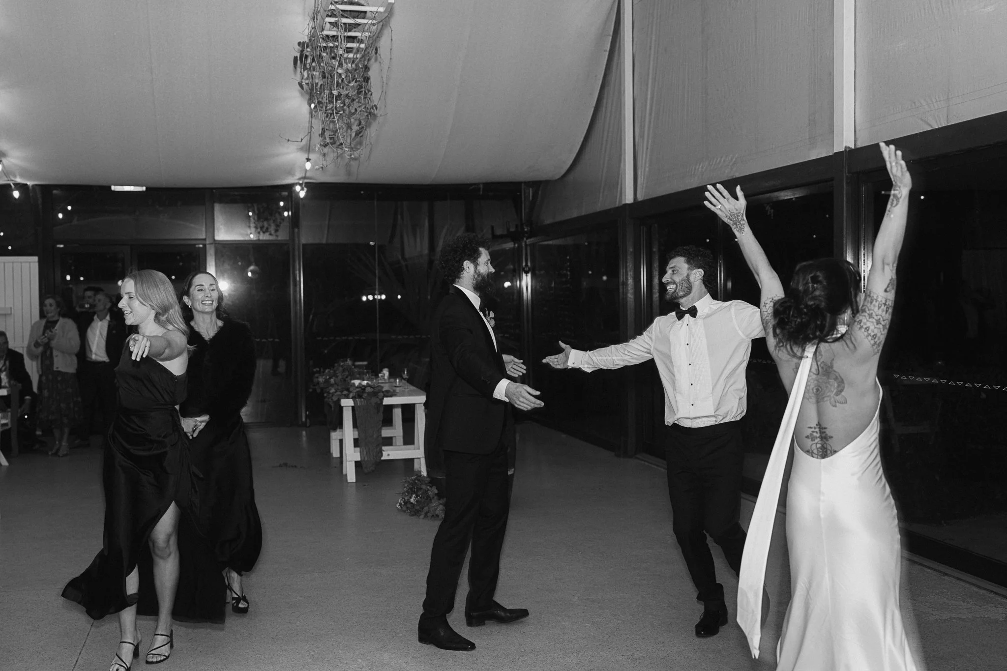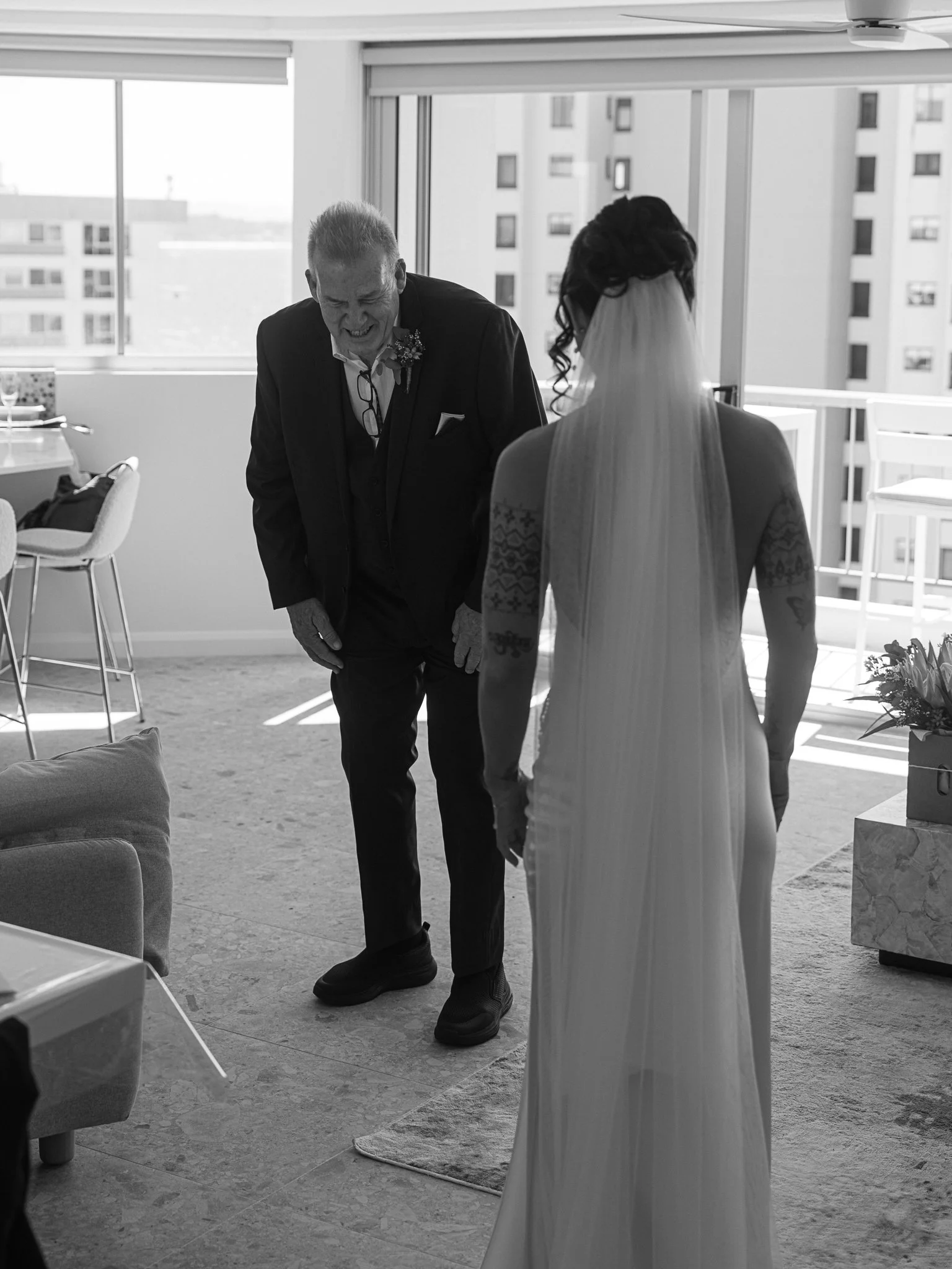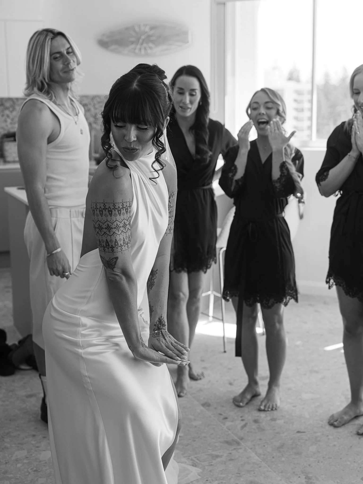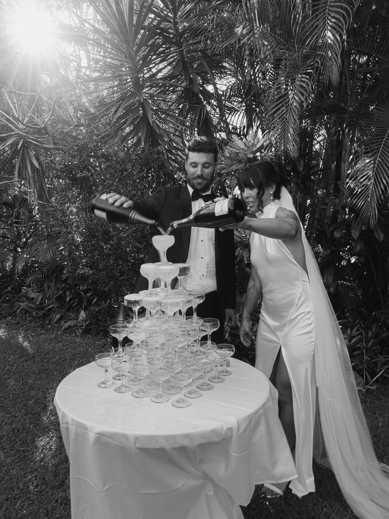 Dana and Jake celebrated their love with a warm, intimate garden party surrounded by family, close friends, and their beloved pup Luna. Nestled in the peaceful Currumbin Valley, this enchanting rainforest wedding took place at the stunning Sol Gardens—a hidden seven-acre oasis of lush greenery, tranquil creeks, ponds, vibrant gardens, and beautifully flowing outdoor spaces.