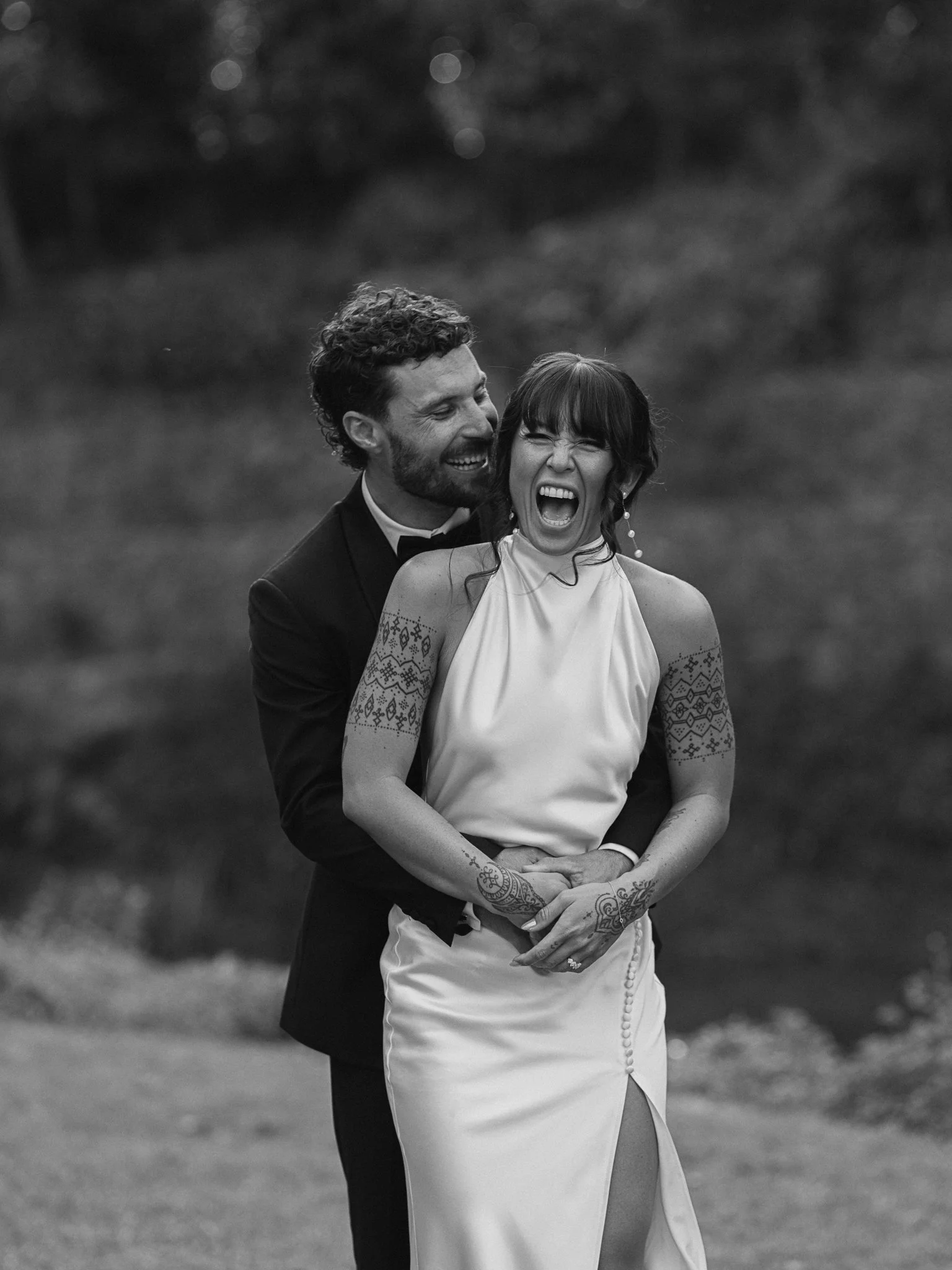 The day felt cosy and heartfelt: filled with laughter, meaningful moments, playful energy from Luna, and the gentle sounds of nature all around. From an emotional ceremony beneath the trees to relaxed celebrations that followed, every detail reflected the couple’s genuine, nature-connected love story.